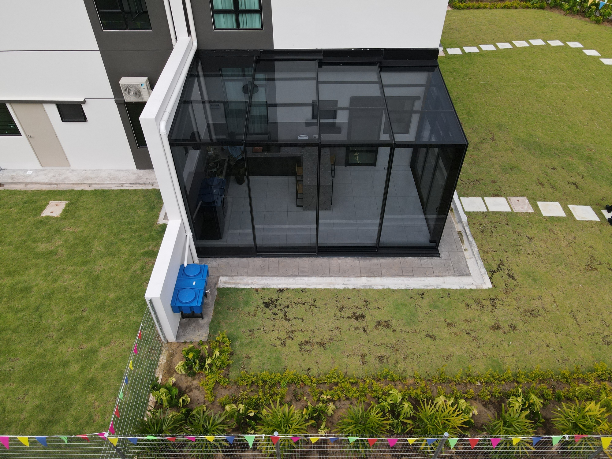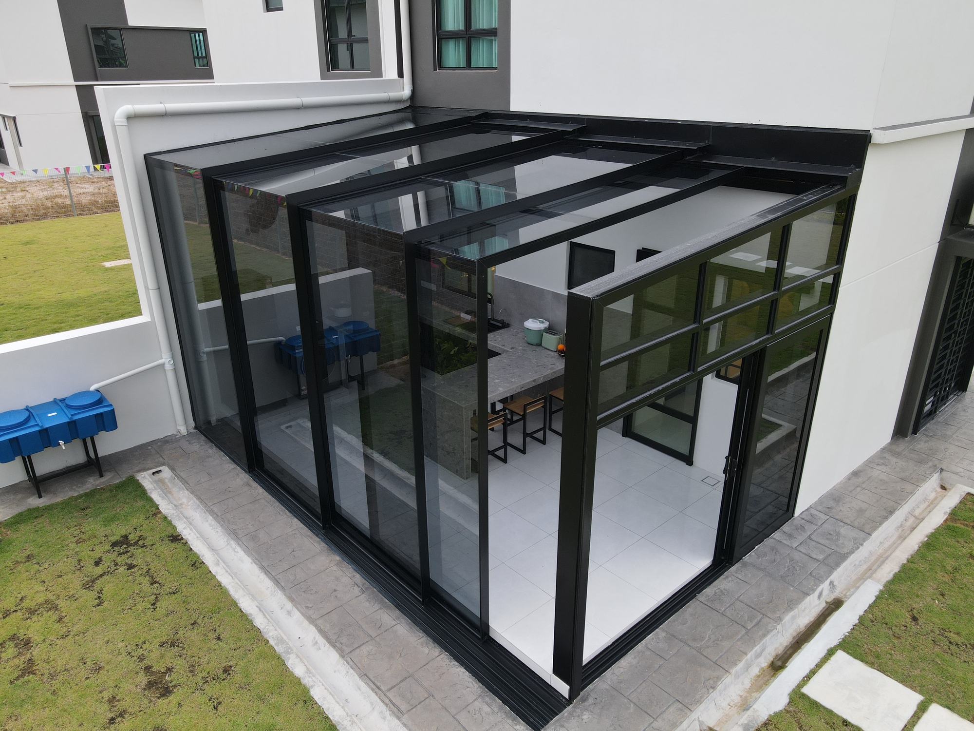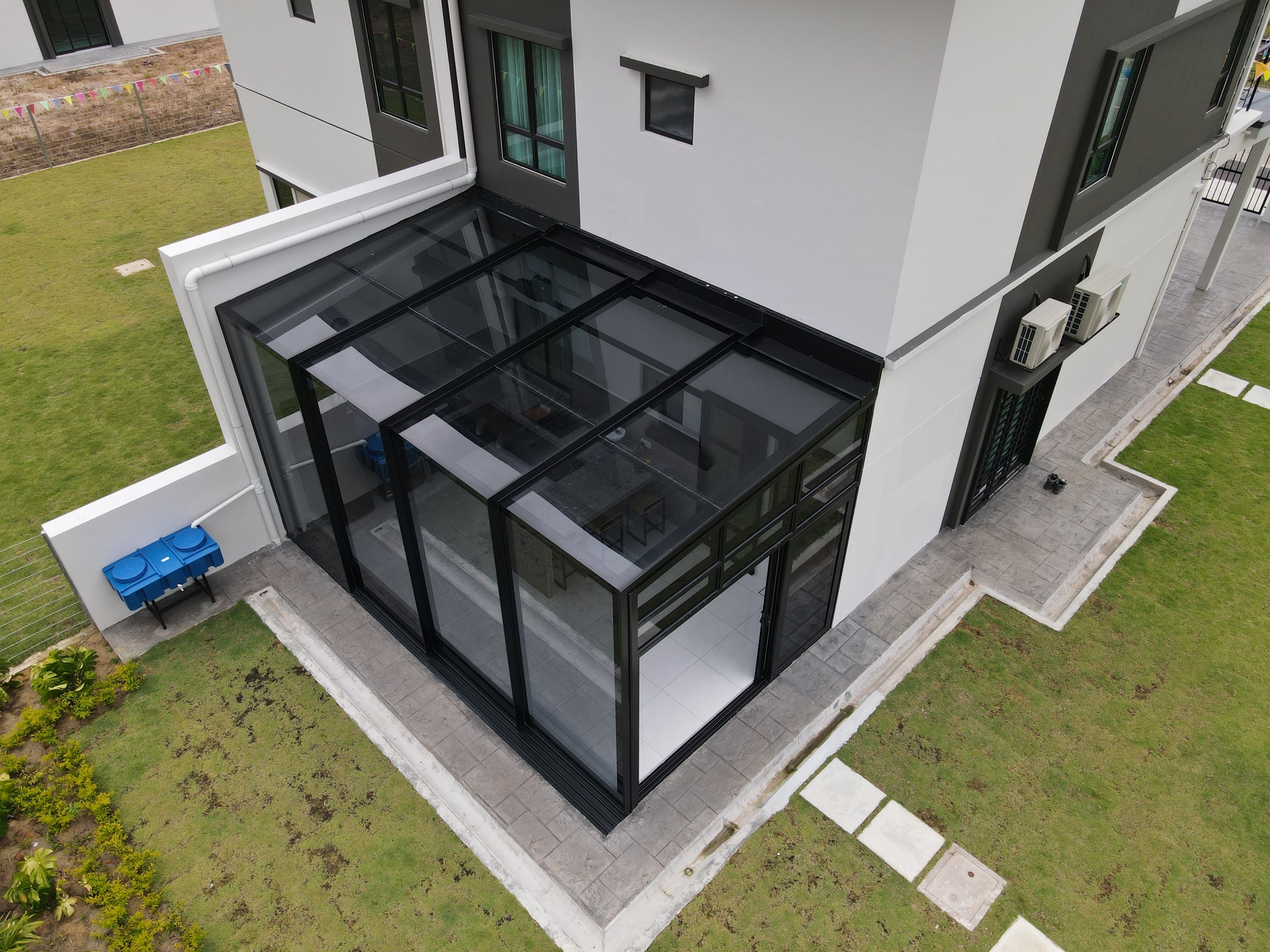 Here is an example of how you can turn an outdoor area into a semi-enclosed space with opening on both sides. It is suitable for exterior compounds such as backyards or sides of semi-detached and bungalows with no walls or obstructions.
