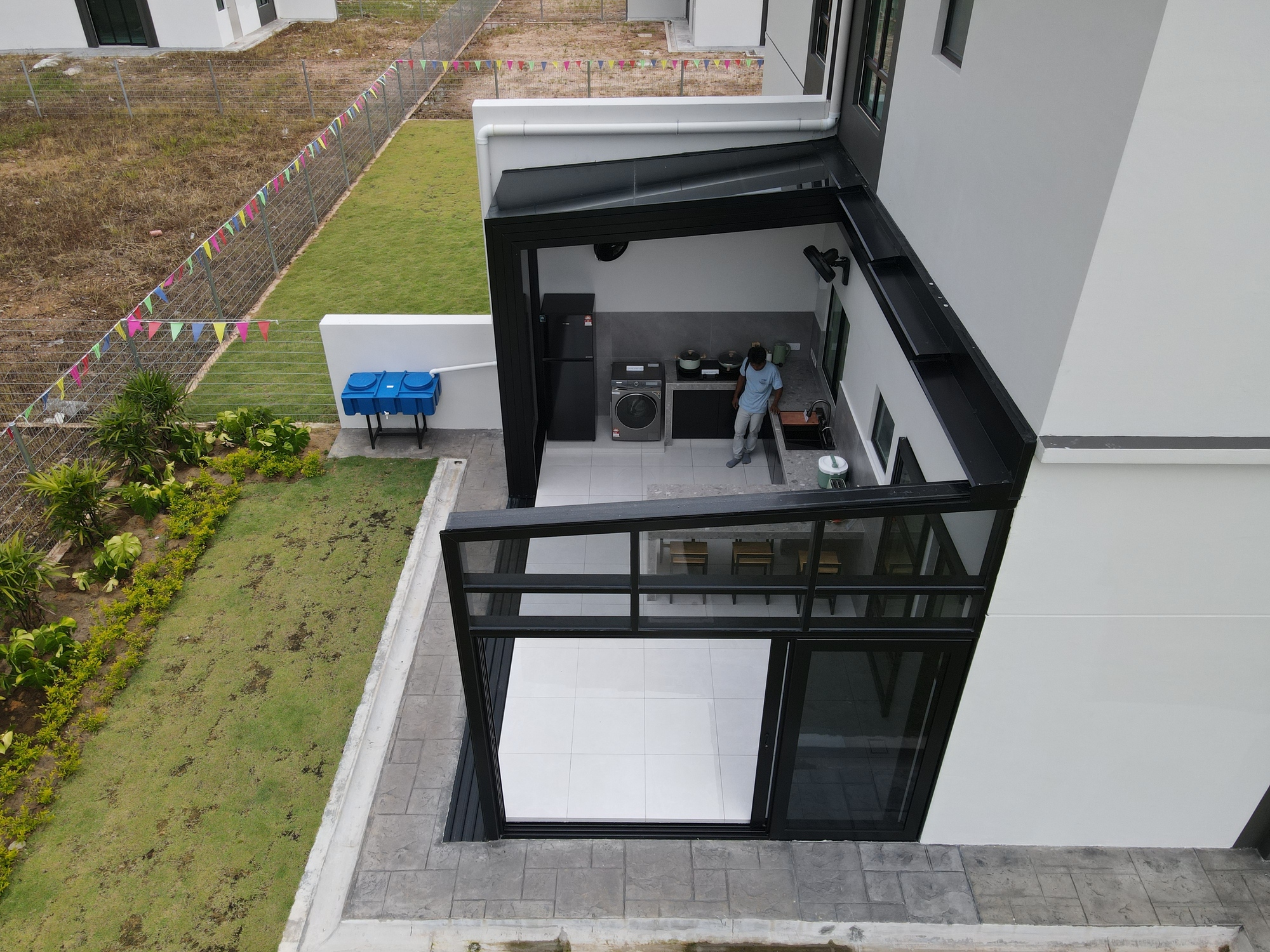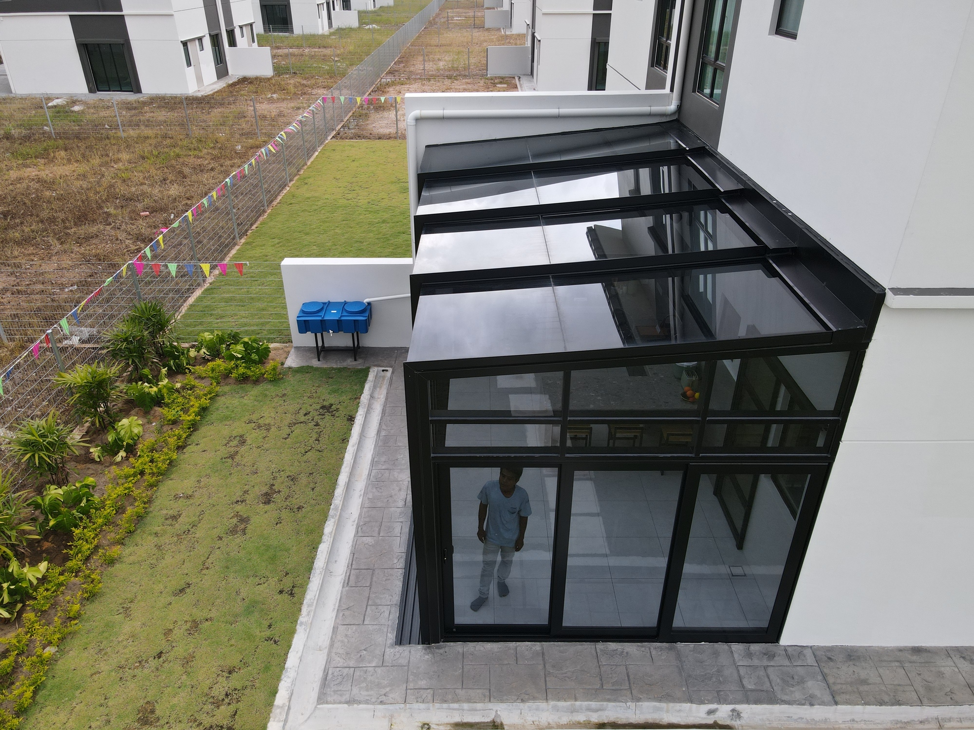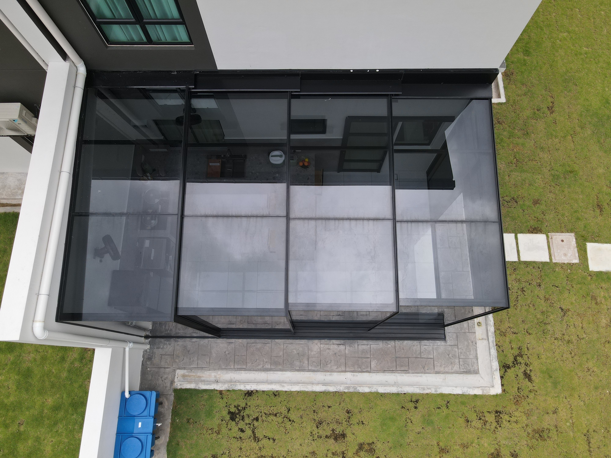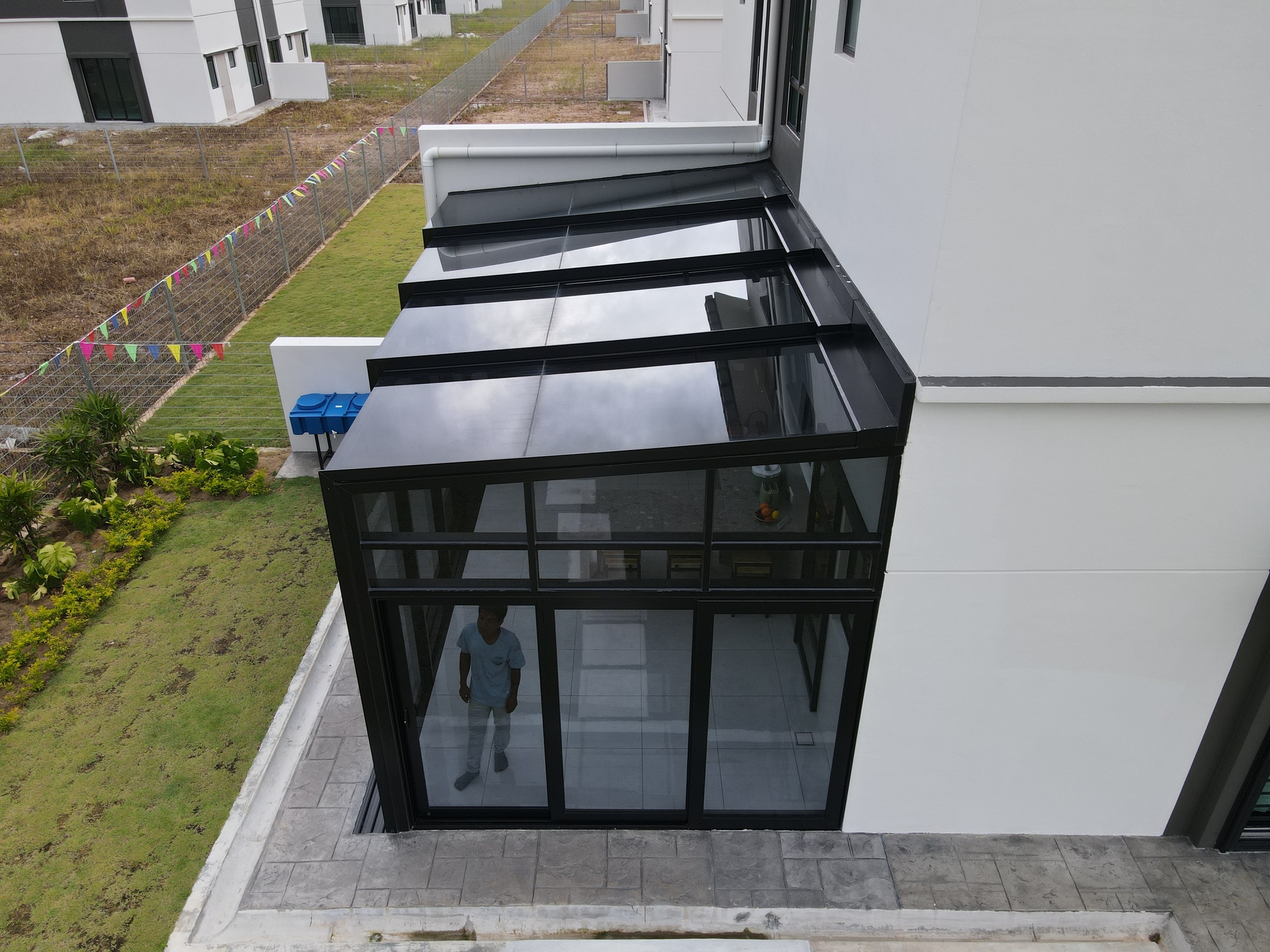 Here is an example of how you can turn an outdoor area into a semi-enclosed space with opening on both sides. It is suitable for exterior compounds such as backyards or sides of semi-detached and bungalows with no walls or obstructions.